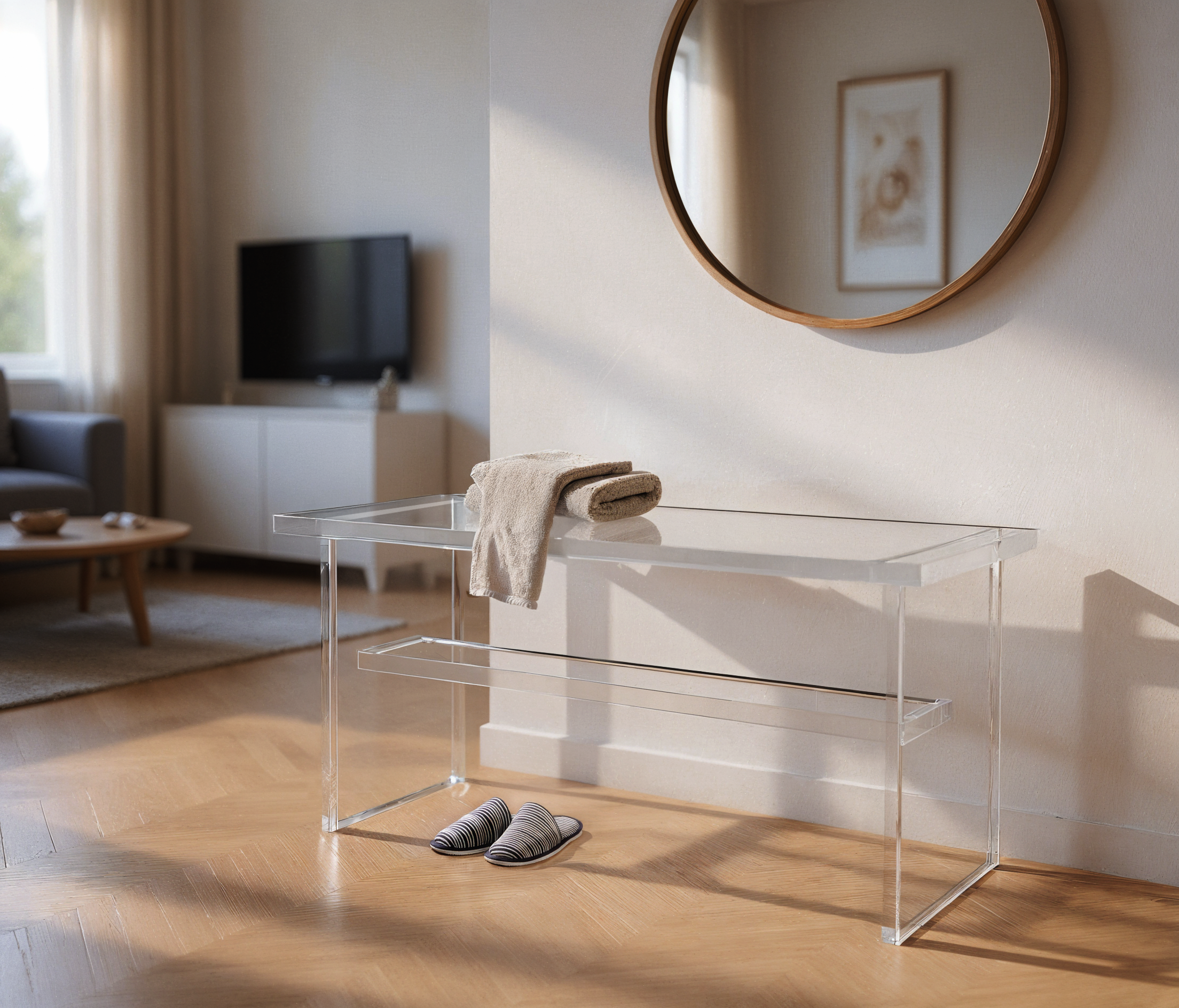 Banco de acrílico clean com acrílico maciço 20mm.