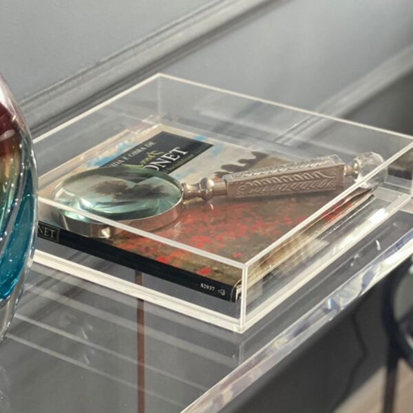 Caixa desenvolvida em acrílico para decorar o ambiente com beleza e funcionalidade.