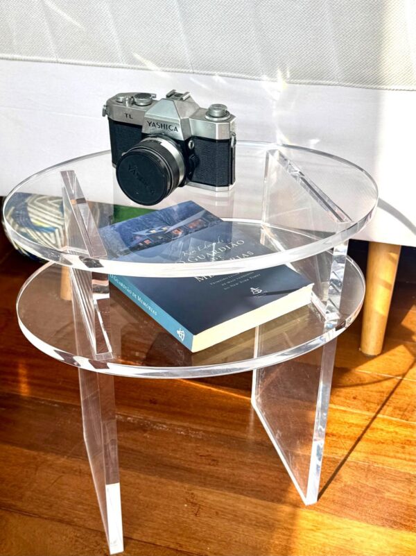 Mesa lateral de acrílico maciço.