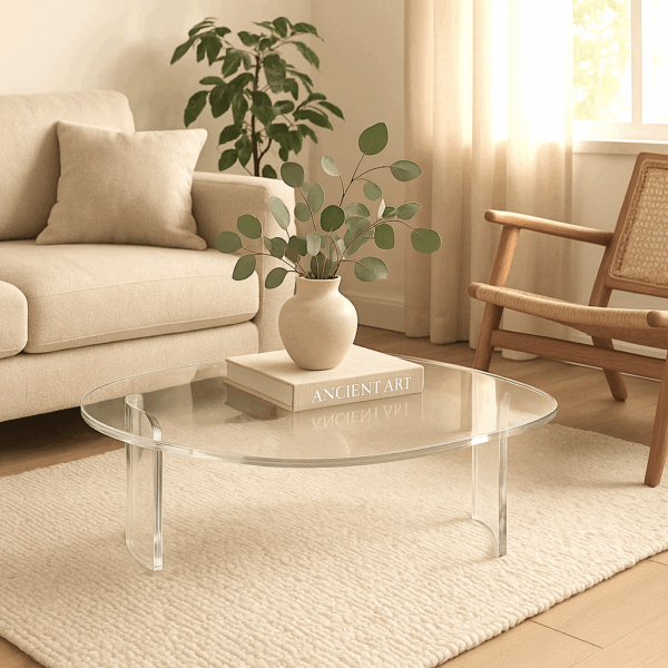 Mesa de centro orgânica em acrílico maciço.