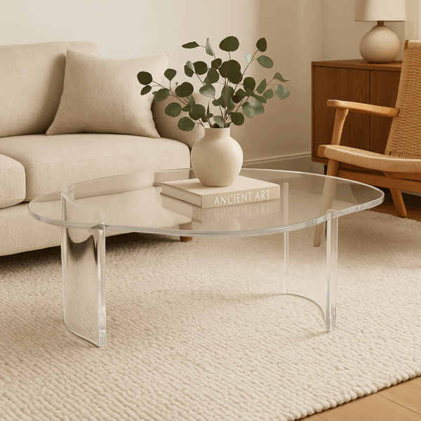 Mesa de centro orgânica em acrílico maciço.