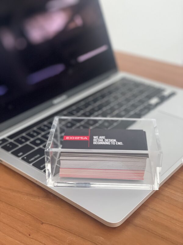 Além de expor seus cartões, o porta cartões Exhimia Home ainda pode ser usado como parte da decoração do local de trabalho, já que seu modelo foi idealizado para tornar o ambiente ainda mais bonito.